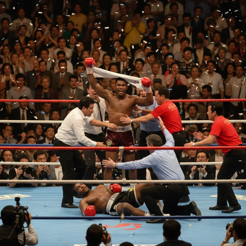 The climax arrived in the tenth round. Tyson, still looking for that one punch to save his title, walked into a brutal uppercut from Douglas that snapped his head back. Douglas followed instantly with a rapid-fire four-punch combination: a left, a right, a left, and a final, crushing left hook. Tyson collapsed. The image of Mike Tyson fumbling on the canvas, trying to put his mouthpiece back in while disoriented, remains one of the most iconic visuals in sports history.